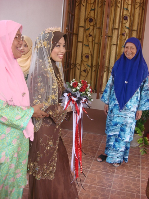 Pengantin disambut oleh Wan Fatimah (AJK Sambutan)